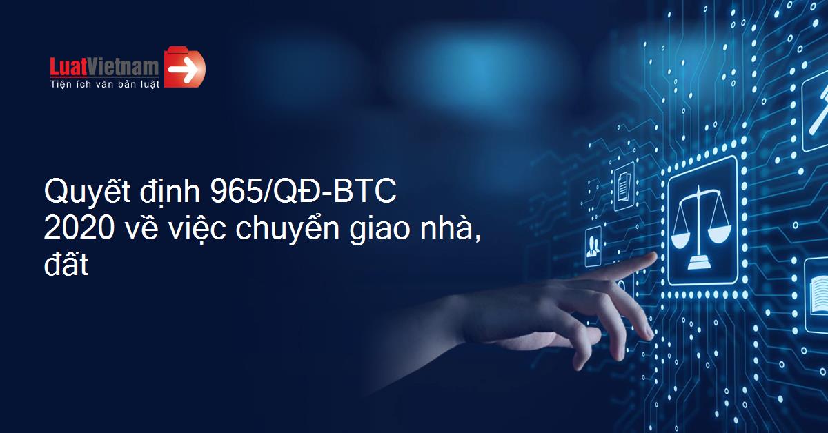 Ngày 24/6/2020, Bộ Tài chính đã ban hành Quyết định 965/QĐ-BTC về việc chuyển giao nhà, đất.