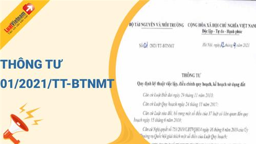 Ngày 12/4/2021, Bộ Tài nguyên và Môi trường đã ban hành Thông tư 01/2021/TT-BTNMT về việc quy định kỹ thuật việc lập, điều chỉnh quy hoạch, kế hoạch sử dụng đất.