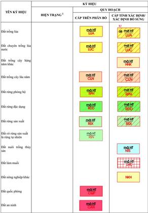 8.1. KÝ HIỆU THỂ HIỆN LOẠI ĐẤT TRÊN BẢN ĐỒ KẾ HOẠCH SỬ DỤNG ĐẤT QUỐC GIA