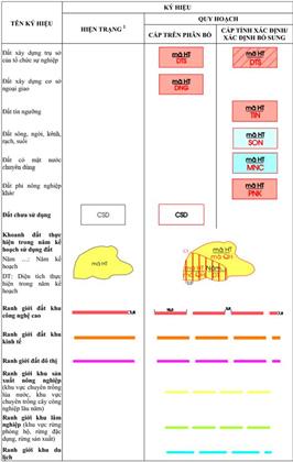 CÁC KÝ HIỆU VÀ HÌNH THỨC THỂ HIỆN TRÊN BẢN ĐỒ HIỆN TRẠNG SỬ DỤNG ĐẤT, BẢN ĐỒ QUY HOẠCH SỬ DỤNG ĐẤT VÀ BẢN ĐỒ KẾ HOẠCH SỬ DỤNG ĐẤT