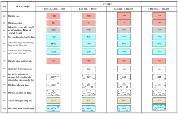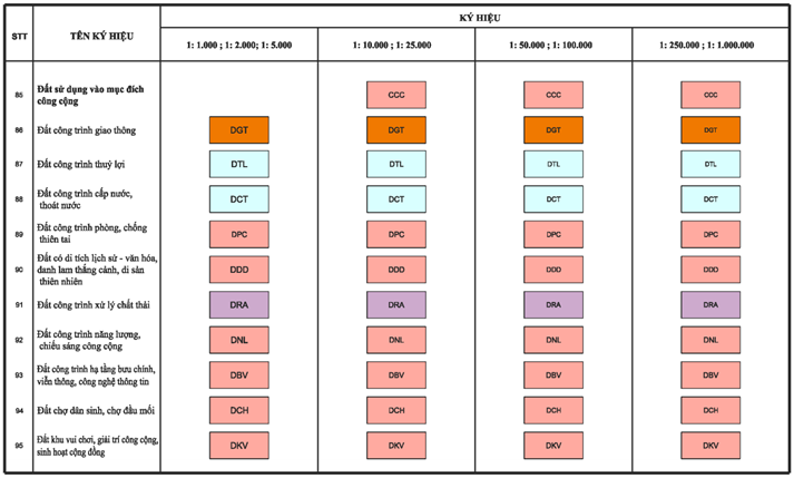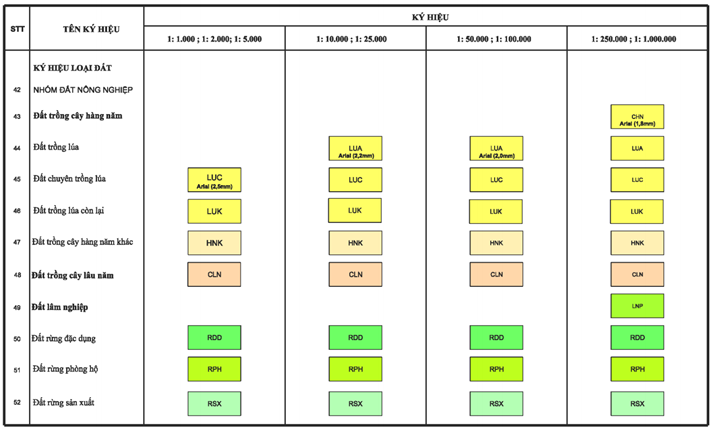 a) Mã ký hiệu loại đất thực hiện theo quy định tại mục A Phụ lục II ban hành kèm theo Thông tư này;