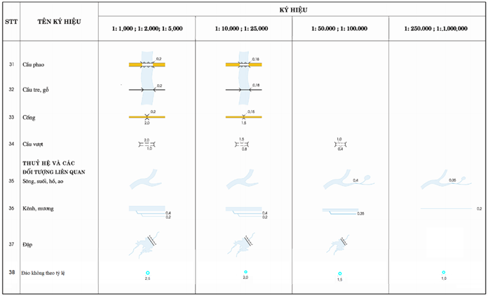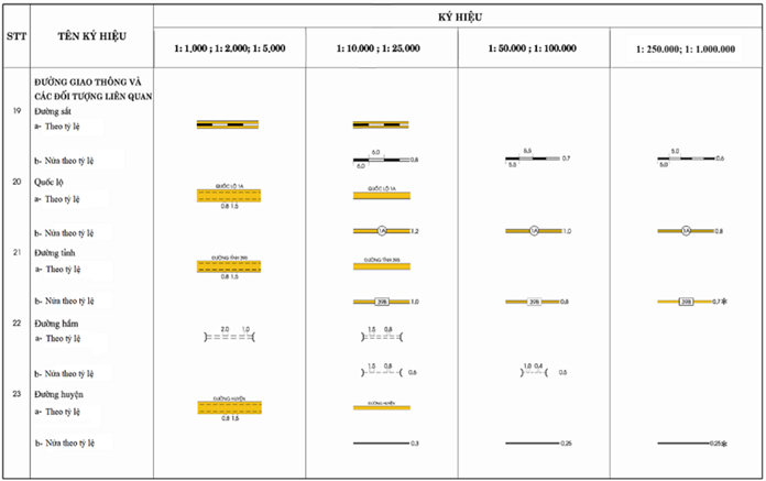 e) Đối tượng thủy hệ, giao thông và các đối tượng khác liên quan thể hiện ranh giới chiếm đất của từng loại đối tượng và nhãn đối tượng như quy định tại điểm c khoản 2 mục này.