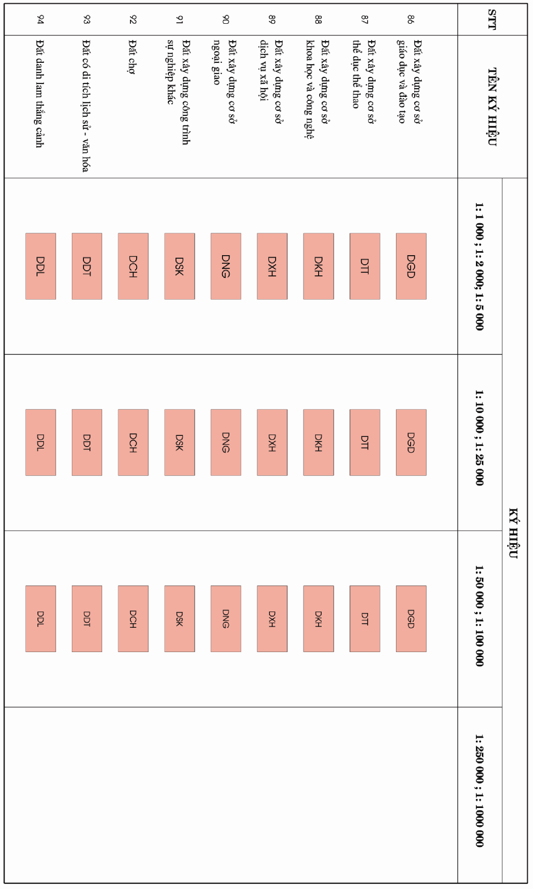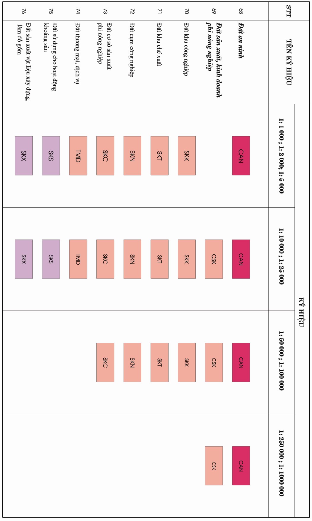 Chỉ tiêu loại đất thống kê, kiểm kê được phân loại theo mục đích sử dụng đất và được phân chia từ khái quát đến chi tiết theo quy định như sau:
