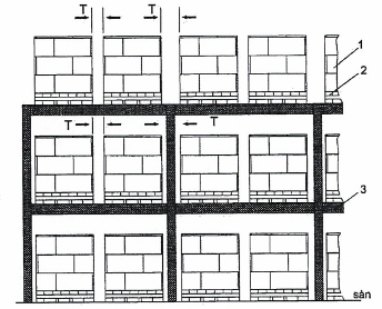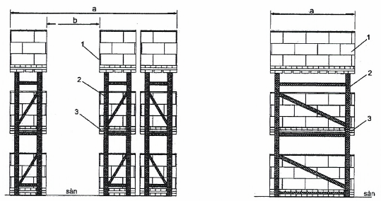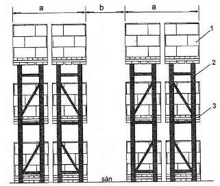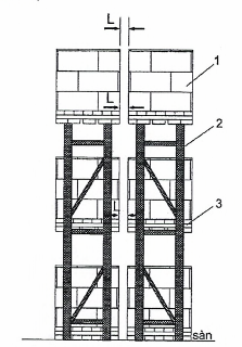 CHÚ DẪN: 1 - hàng hóa; 2 - kệ hàng (giá đỡ); 3 - pallet