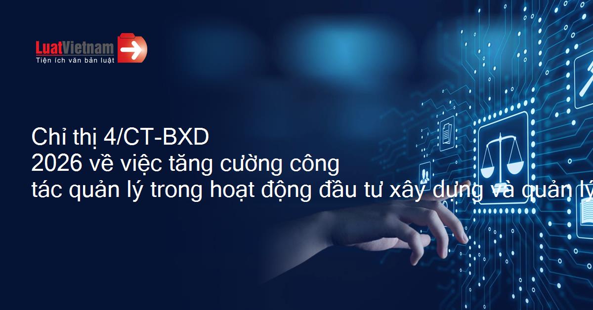 Chỉ thị 4/CT-BXD 2026 về việc tăng cường công tác quản lý trong hoạt động đầu tư xây dựng và quản lý, vận hành, khai thác, bảo trì công trình xây dựng