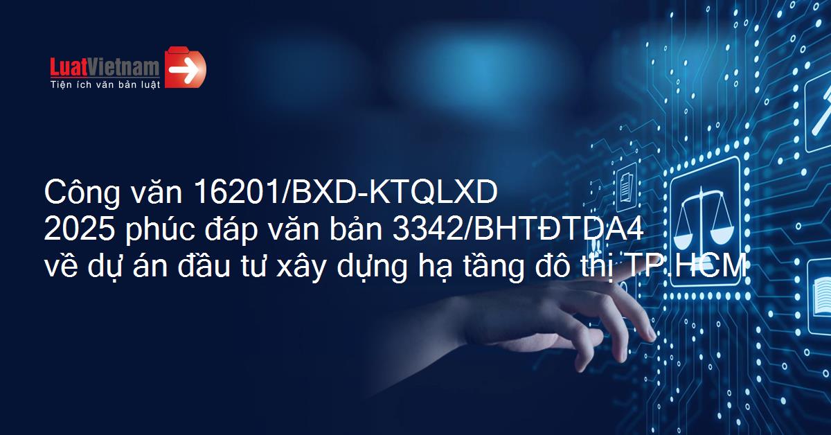 Công văn 16201/BXD-KTQLXD 2025 phúc đáp văn bản 3342/BHTĐTDA4 về dự án đầu tư xây dựng hạ tầng đô thị TP.HCM