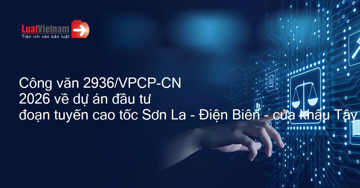 Công văn 2936/VPCP-CN 2026 về dự án đầu tư đoạn tuyến cao tốc Sơn La - Điện Biên - cửa khẩu Tây Trang giai đoạn 1