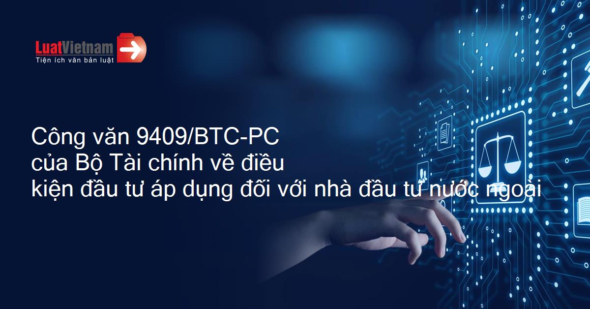 Công văn 9409/BTC-PC của Bộ Tài chính về điều kiện đầu tư áp dụng đối với nhà đầu tư nước ngoài