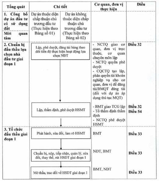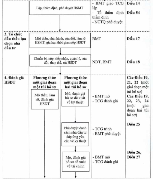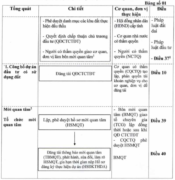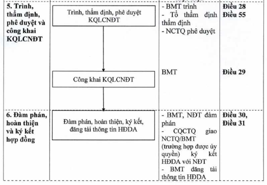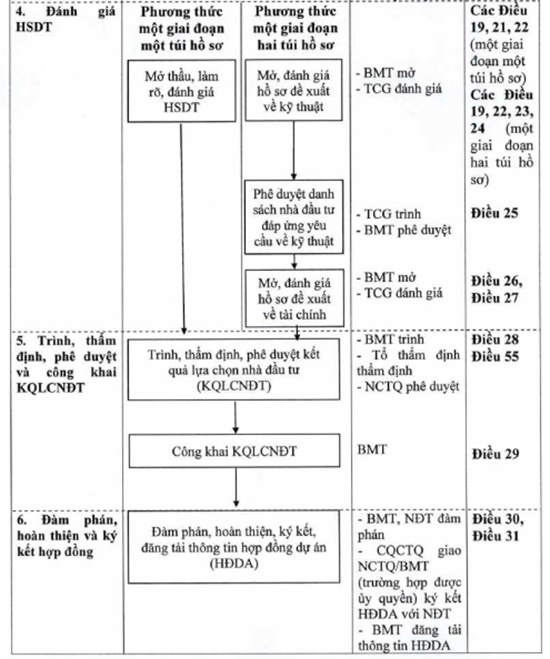 - Cột [2], [3]: Thời gian dự kiến cho các hoạt động lựa chọn nhà đầu tư được liệt kê tại các cột này.