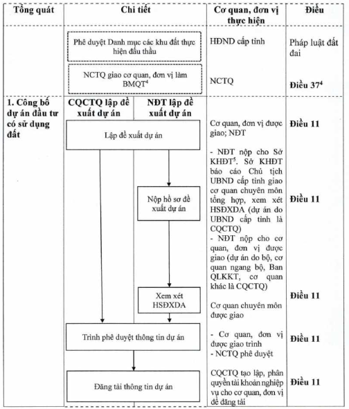 a) Công bố thông tin dự án đầu tư có sử dụng đất đối với dự án không thuộc diện chấp thuận chủ trương đầu tư;