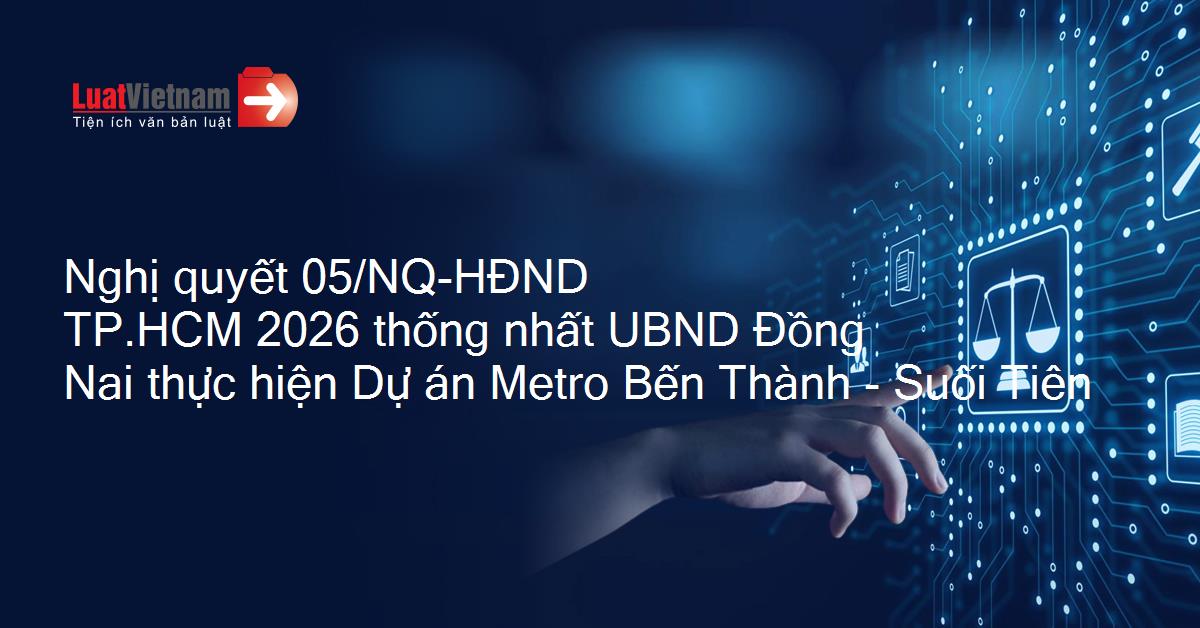 Nghị quyết 05/NQ-HĐND của Hội đồng nhân dân Thành phố Hồ Chí Minh về thống nhất Ủy ban nhân dân tỉnh Đồng Nai làm cơ quan có thẩm quyền thực hiện Dự án đầu tư xây dựng kéo dài tuyến Metro Bến Thành - Suối Tiên đến Trung tâm hành chính tỉnh và cảng hàng không quốc tế Long Thành theo phương thức đối tác công tư đi qua địa bàn hai đơn vị hành chính cấp tỉnh (tỉnh Đồng Nai và Thành phố Hồ Chí Minh)