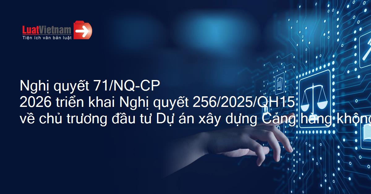 Nghị quyết 71/NQ-CP của Chính phủ triển khai Nghị quyết 256/2025/QH15 ngày 11/12/2025 của Quốc hội về chủ trương đầu tư Dự án đầu tư xây dựng Cảng hàng không quốc tế Gia Bình
