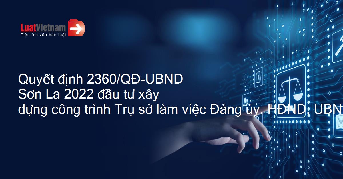 Quyết định 2360/QĐ-UBND Sơn La 2022 đầu tư xây dựng công trình Trụ sở làm việc Đảng ủy, HĐND, UBND xã Bon Phặng