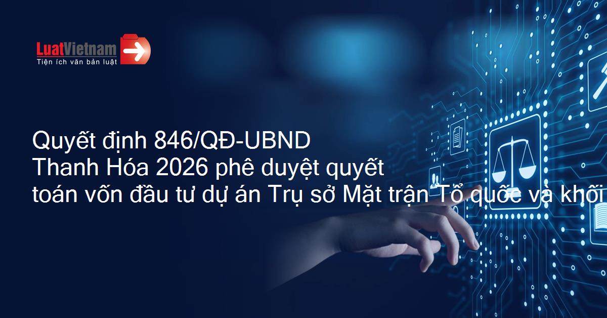 Quyết định 846/QĐ-UBND Thanh Hóa 2026 phê duyệt quyết toán vốn đầu tư dự án Trụ sở Mặt trận Tổ quốc và khối đoàn thể
