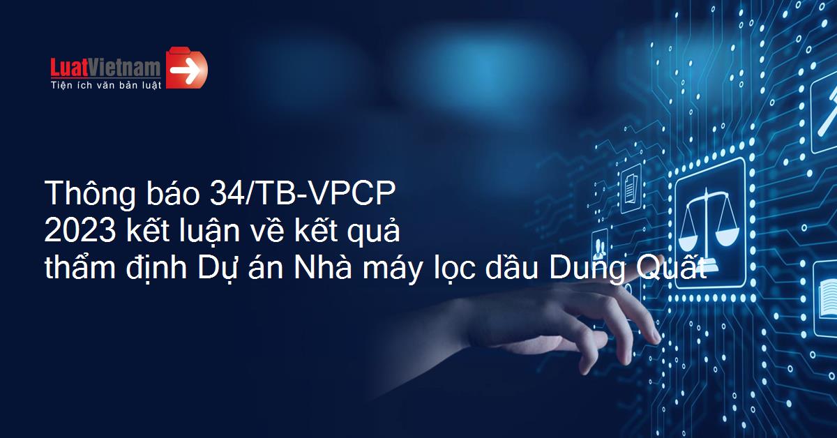 Thông báo 34/TB-VPCP 2023 kết luận về kết quả thẩm định Dự án Nhà máy lọc dầu Dung Quất