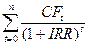 Chỉ tiêu này cho biết lợi nhuận của dự án, không bao gồm cơ cấu huy động vốn. IRR là tỷ suất chiết khấu (r) tại điều kiện biên NPV=0 và được tính toán thông qua việc giải phương trình sau đây: