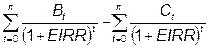 Trong đó: Bt, Ct, t, n có ý nghĩa tương tự như trong công thức tính ENPV nêu trên.