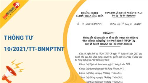 Ngày 19/8/2021, Bộ Nông nghiệp và Phát triển nông thôn đã ban hành Thông tư 10/2021/TT-BNNPTNT về việc hướng dẫn nội dung đầu tư, hỗ trợ đầu tư thực hiện nhiệm vụ “Phát triển sản xuất giống” theo Quyết định 703/QĐ-TTg ngày 28/5/2020 của Thủ tướng Chính phủ.
