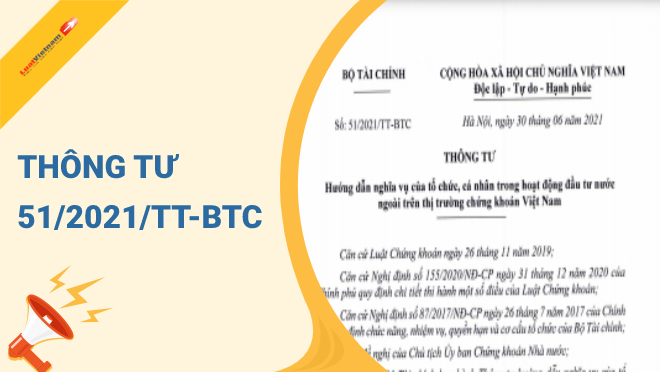 Ngày 30/06/2021, Bộ Tài chính ban hành Thông tư 51/2021/TT-BTC về việc hướng dẫn nghĩa vụ của tổ chức, cá nhân trong hoạt động đầu tư nước ngoài trên thị trường chứng khoán Việt Nam.