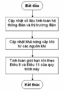 1. Đơn vị vận hành hệ thống điện và thị trường điện phải tính toán giới hạn công suất từng giờ cho cụm các nhà máy tuabin khí bị giới hạn sản lượng bởi khí theo trình tự sau: