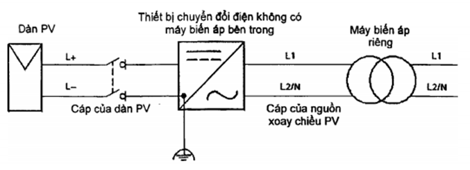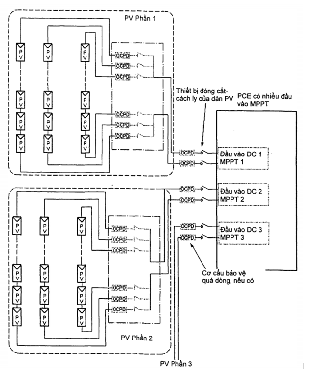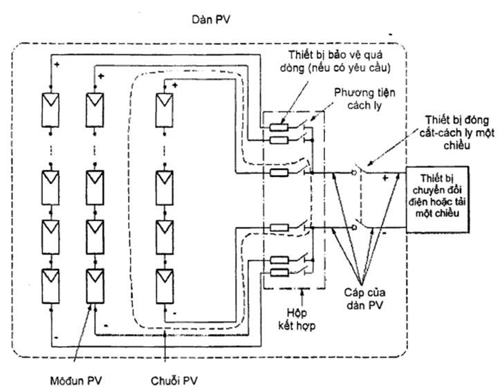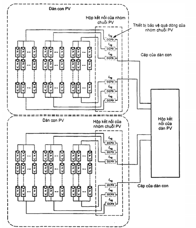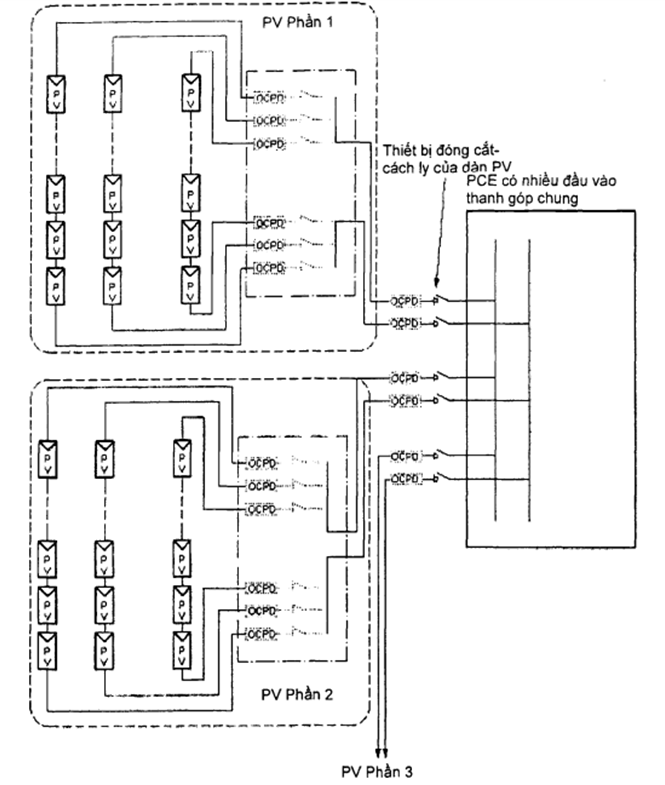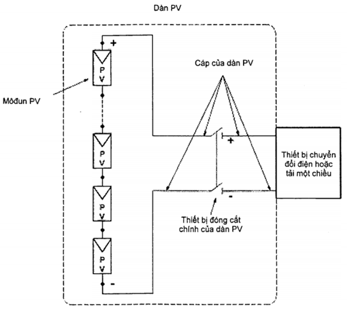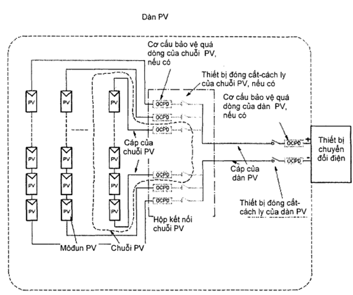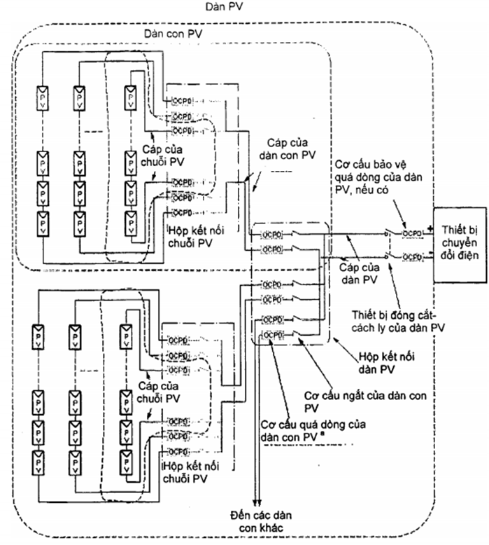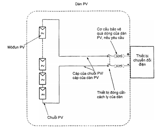 CHÚ THÍCH 2: Tiêu chuẩn này không đề cập đến các yêu cầu bảo vệ của dàn PV có sử dụng pin/acquy trong hệ thống lắp đặt PV.