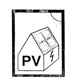 Hình C.712.2 - Ví dụ về dấu hiệu dùng cho bảng phân phối điện để nhận biết PV trên tòa nhà