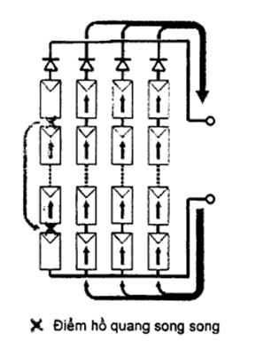 | a) không có điốt chặn | b) có điốt chặn ở từng chuỗi |