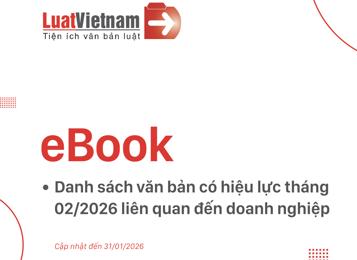Nhằm hỗ trợ doanh nghiệp cập nhật kịp thời các quy định pháp luật mới, LuatVietnam gửi tặng Ebook tổng hợp, bao gồm:- Danh sách văn bản có hiệu lực tháng 02/2026 liên quan tới doanh nghiệp.