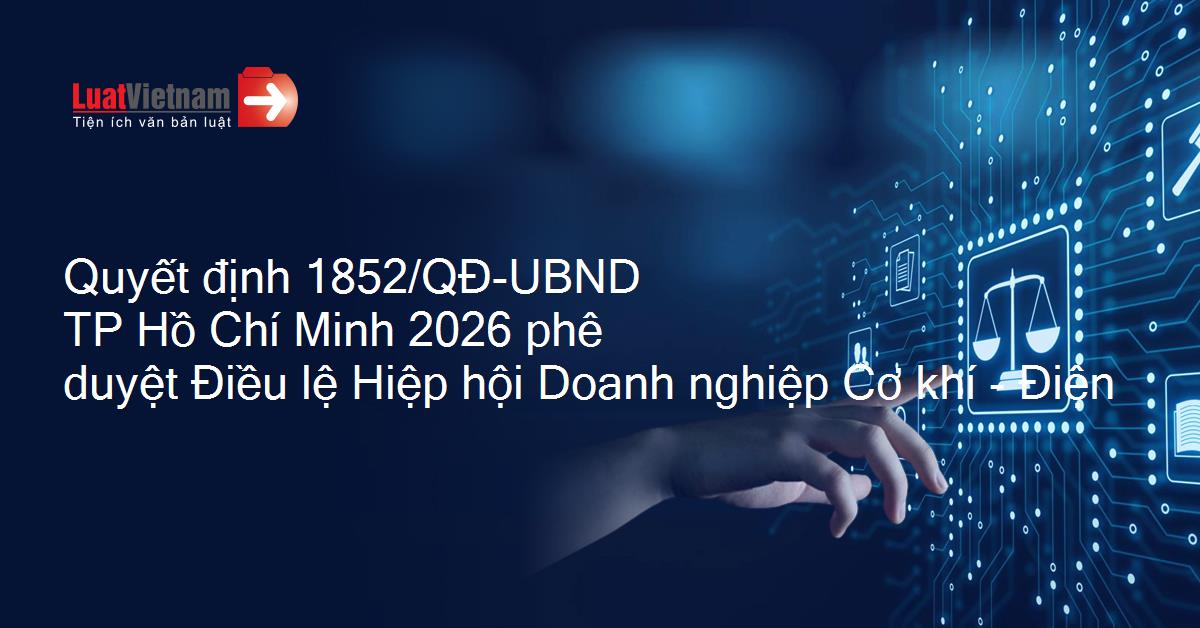 Quyết định 1852/QĐ-UBND TP Hồ Chí Minh 2026 phê duyệt Điều lệ Hiệp hội Doanh nghiệp Cơ khí - Điện