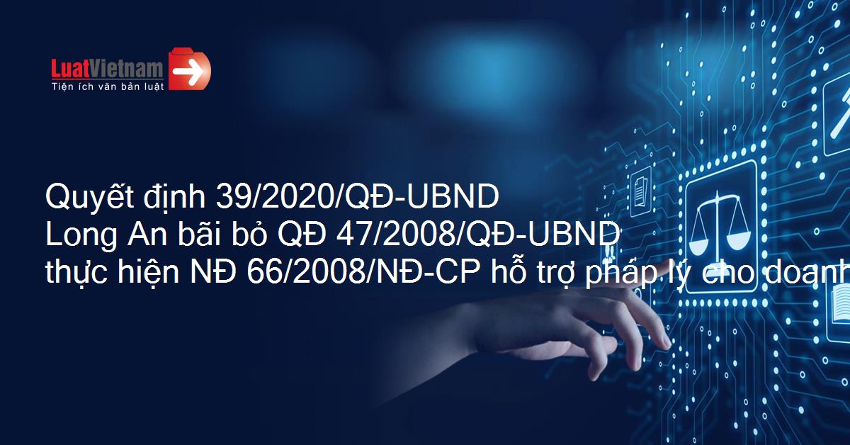 Quyết định 39/2020/QĐ-UBND Long An bãi bỏ QĐ 47/2008/QĐ-UBND thực hiện NĐ 66/2008/NĐ-CP hỗ trợ pháp lý cho doanh nghiệp