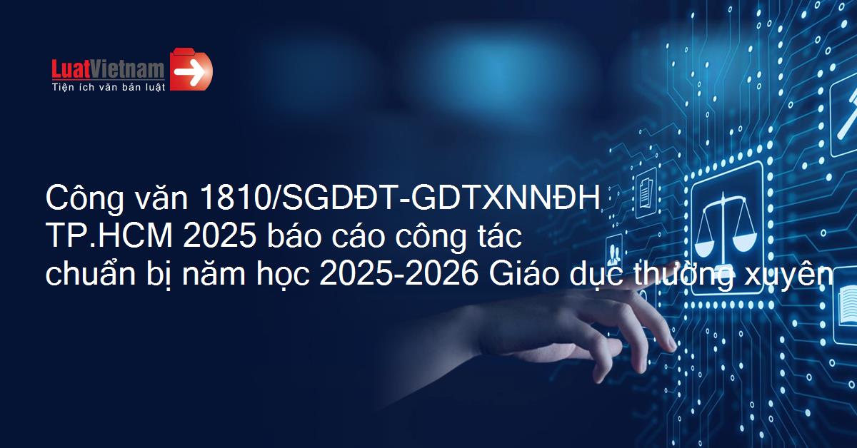 Công văn 1810/SGDĐT-GDTXNNĐH của Sở Giáo dục và Đào tạo Thành phố Hồ Chí Minh về việc thực hiện báo cáo công tác chuẩn bị năm học 2025 - 2026 đối với Giáo dục thường xuyên