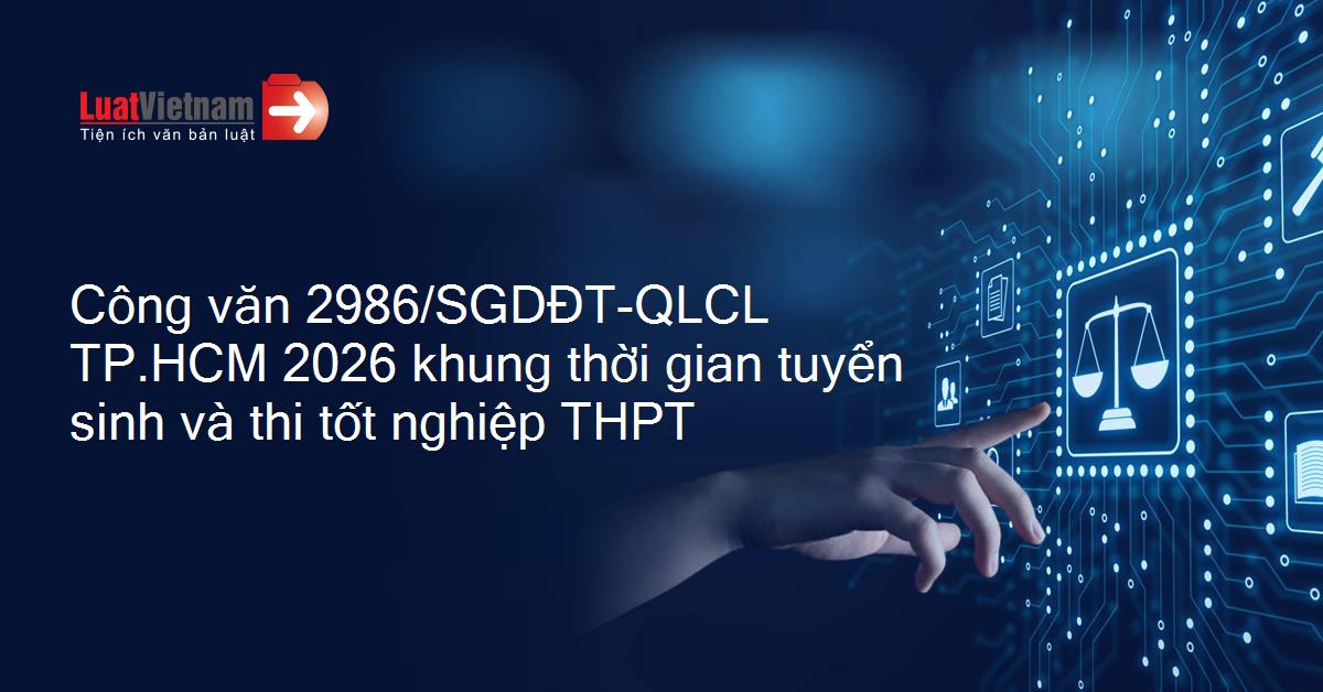 Công văn 2986/SGDĐT-QLCL của Sở Giáo dục và Đào tạo Thành phố Hồ Chí Minh về khung thời gian kế hoạch chuẩn bị, tổ chức tuyển sinh các lớp đầu cấp và thi tốt nghiệp trung học phổ thông năm 2026