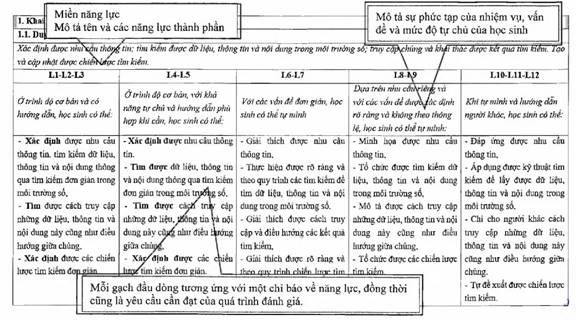 Mỗi mức độ năng lực của mỗi khối lớp được xem xét nhiều yếu tố một lúc: