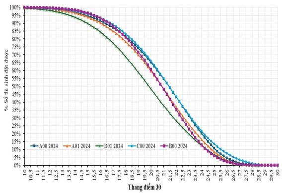 Biểu đồ 2. Phổ điểm tích lũy 5 khối thi tốt nghiệp năm 2024.
