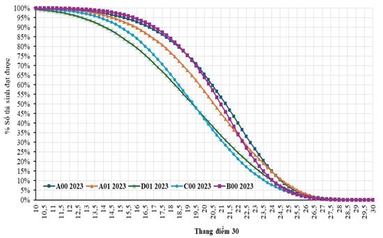 Biểu đồ 3. Phố điểm tích lũy 5 khối thi tốt nghiệp năm 2023.