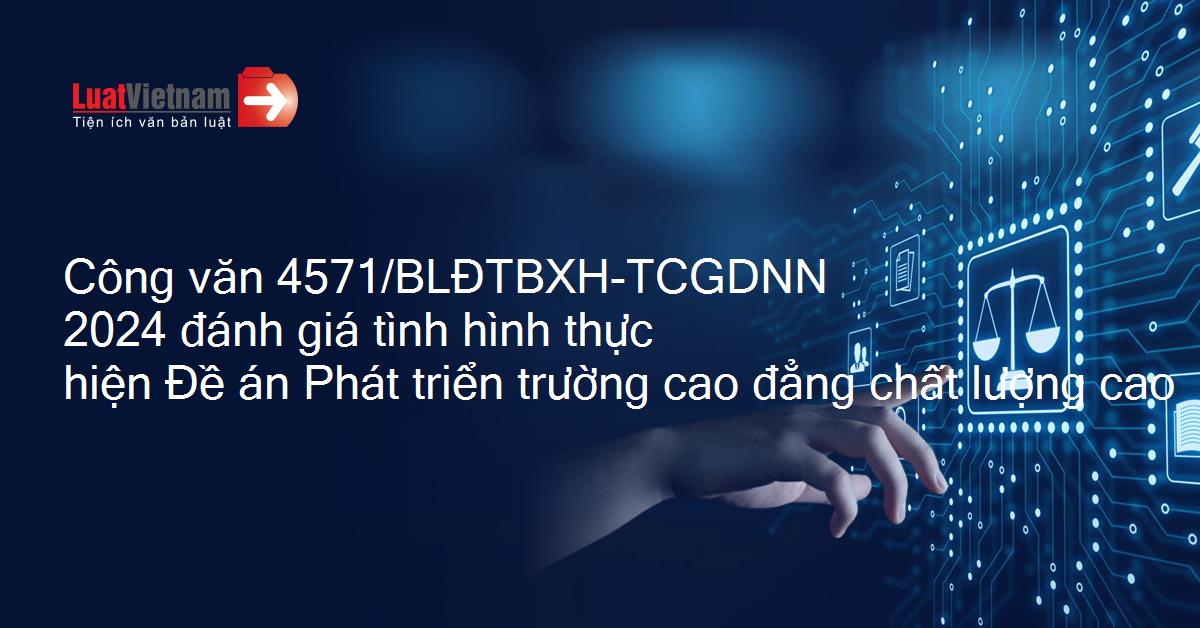 Công văn 4571/BLÐTBXH-TCGDNN 2024 đánh giá tình hình thực hiện Đề án Phát triển trường cao đẳng chất lượng cao