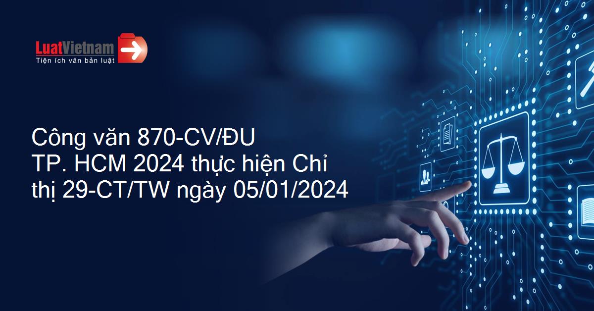 Công văn 870-CV/ĐU TP. HCM 2024 thực hiện Chỉ thị 29-CT/TW ngày 05/01/2024