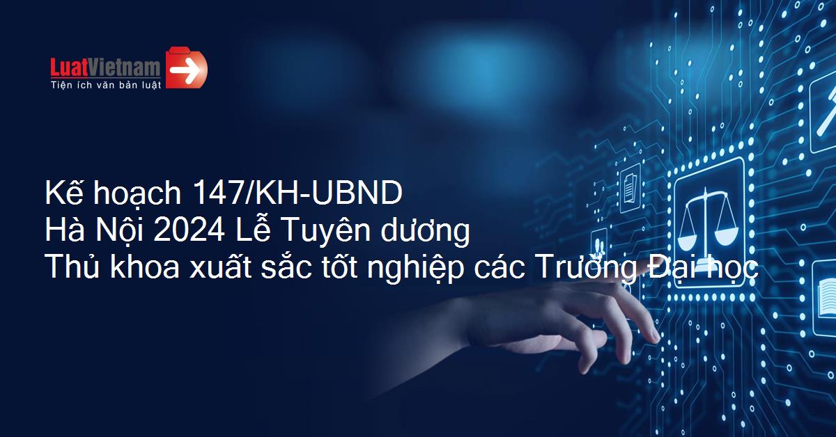 Kế hoạch 147/KH-UBND của Ủy ban nhân dân Thành phố Hà Nội tổ chức "Lễ Tuyên dương Thủ khoa xuất sắc tốt nghiệp các Trường Đại học, Học viện trên địa bàn Thành phố Hà Nội năm 2024"