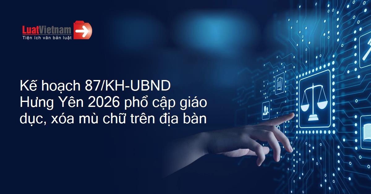 Kế hoạch 87/KH-UBND của Ủy ban nhân dân tỉnh Hưng Yên thực hiện công tác phổ cập giáo dục, xóa mù chữ trên địa bàn tỉnh Hưng Yên năm 2026