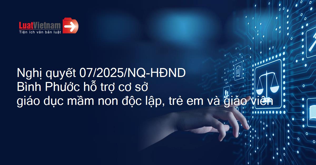 Nghị quyết 07/2025/NQ-HĐND của Hội đồng nhân dân tỉnh Bình Phước quy định mức hỗ trợ đối với cơ sở giáo dục mầm non độc lập; trẻ em và giáo viên tại cơ sở giáo dục mầm non thuộc loại hình dân lập, tư thục ở địa bàn có khu công nghiệp, tỉnh Bình Phước từ năm học 2025 - 2026 và những năm học tiếp theo