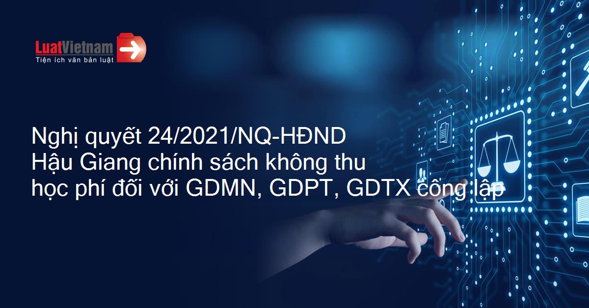 Nghị quyết 24/2021/NQ-HĐND Hậu Giang chính sách không thu học phí đối với GDMN, GDPT, GDTX công lập