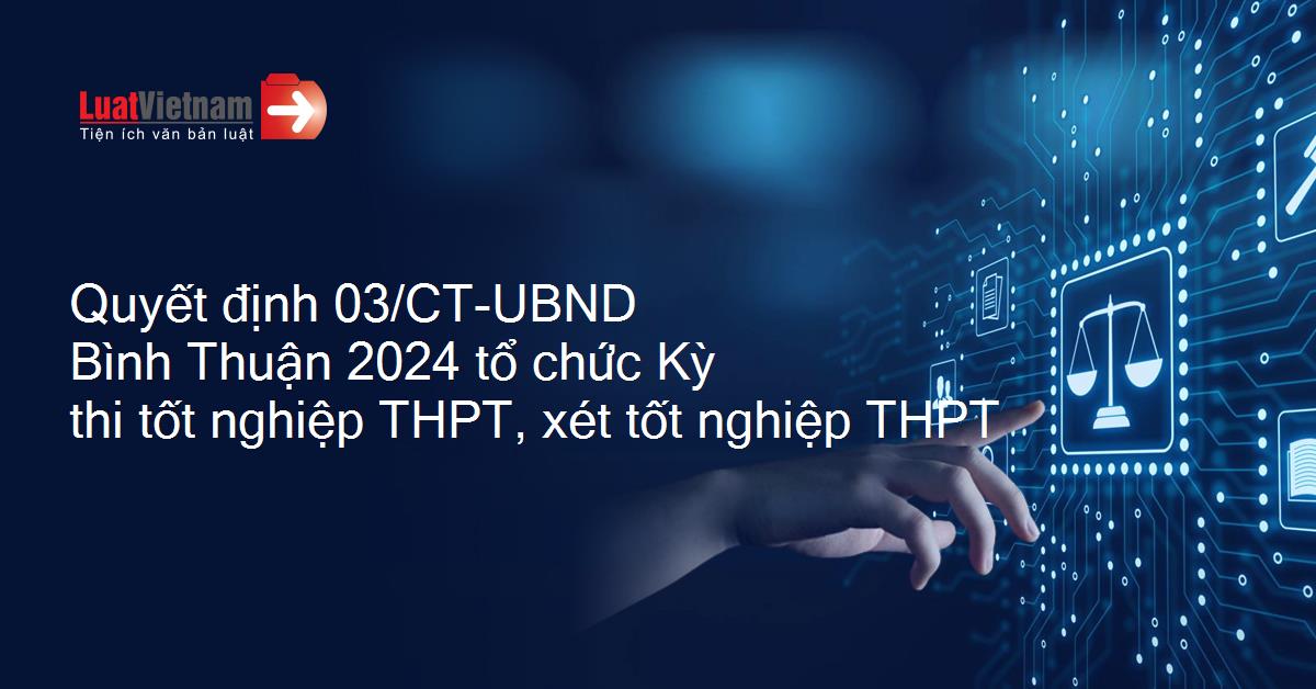 Quyết định 03/CT-UBND của Ủy ban nhân dân tỉnh Bình Thuận về việc tổ chức Kỳ thi tốt nghiệp trung học phổ thông, xét công nhận tốt nghiệp trung học phổ thông, xét công nhận hoàn thành chương trình tiểu học, xét công nhận tốt nghiệp trung học cơ sở, bổ túc trung học cơ sở năm 2024 và xét tuyển sinh vào lớp 6 trung học cơ sở, thi tuyển sinh vào lớp 10 trung học phổ thông năm học 2024 - 2025