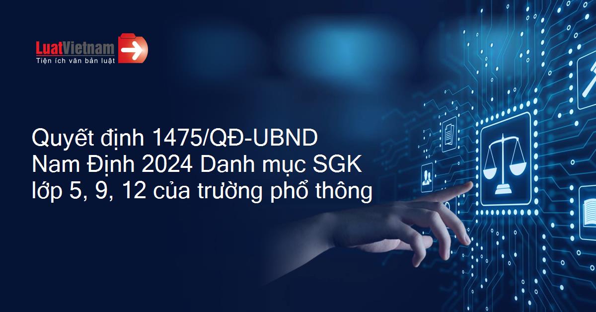 Quyết định 1475/QĐ-UBND của Ủy ban nhân dân tỉnh Nam Định phê duyệt Danh mục sách giáo khoa lớp 5, lớp 9, lớp 12 của các trường phổ thông và Danh mục sách giáo khoa lớp 1 của một số trường tiểu học trên địa bàn tỉnh Nam Định từ năm học 2024-2025