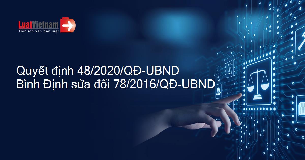 Quyết định 48/2020/QĐ-UBND Bình Định sửa đổi 78/2016/QĐ-UBND