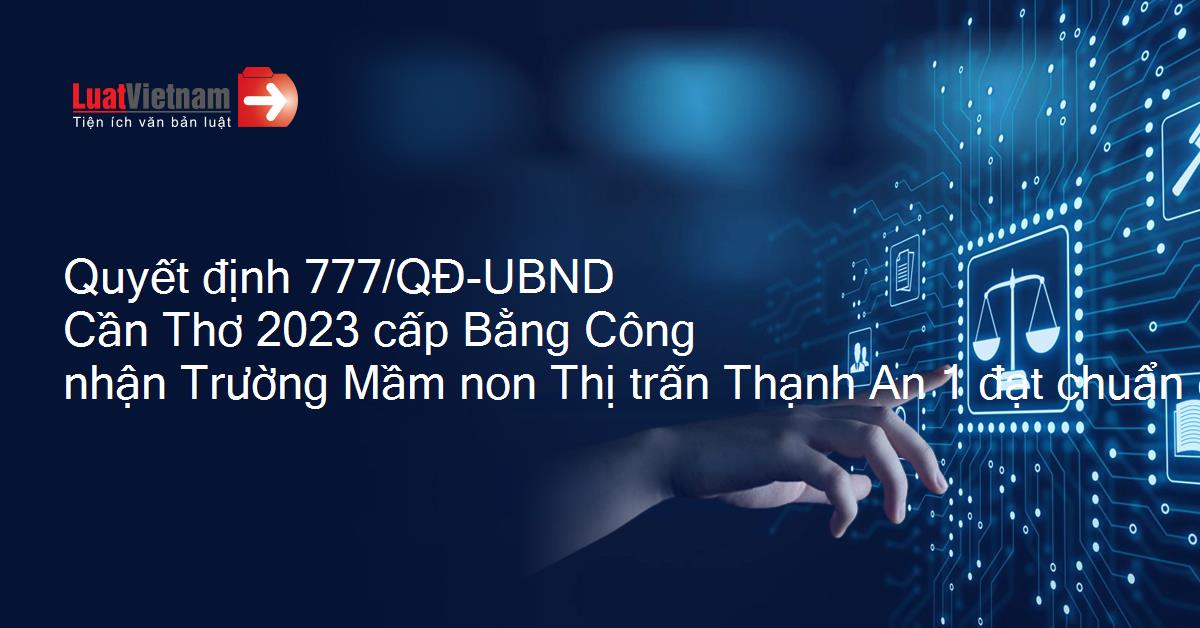 Quyết định 777/QĐ-UBND Cần Thơ 2023 cấp Bằng Công nhận Trường Mầm non Thị trấn Thạnh An 1 đạt chuẩn quốc gia Mức độ 1