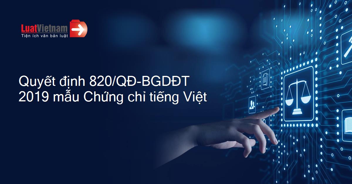 Quyết định 820/QĐ-BGDĐT 2019 mẫu Chứng chỉ tiếng Việt