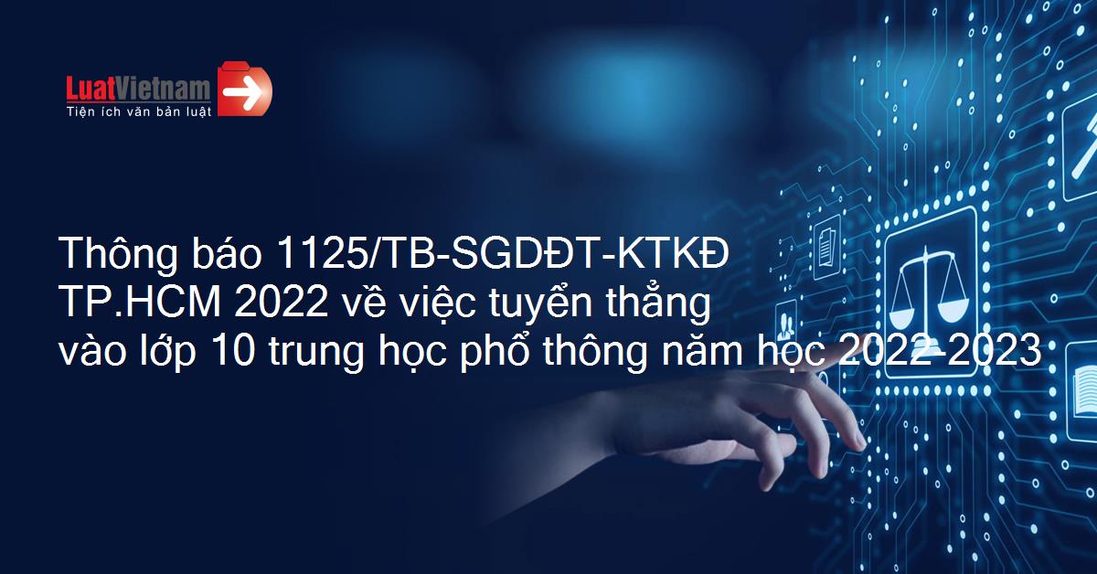 Thông báo 1125/TB-SGDĐT-KTKĐ TP.HCM 2022 về việc tuyển thẳng vào lớp 10 trung học phổ thông năm học 2022-2023