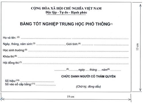 1. Tên bằng theo từng trình độ đào tạo (bằng tốt nghiệp cao đẳng, bằng cao đẳng, bằng trung cấp chuyên nghiệp, bằng trung cấp, bằng trung học nghề...).