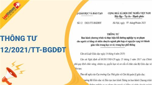 Ngày 05/4/2021, Bộ Giáo dục và Đào tạo đã ra Thông tư 12/2021/TT-BGDĐT về việc ban hành Chương trình và thực hiện bồi dưỡng nghiệp vụ sư phạm cho người có bằng cử nhân chuyên ngành phù hợp có nguyện vọng trở thành giáo viên trung học cơ sở, trung học phổ thông.