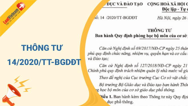 Ngày 26/5/2020, Bộ Giáo dục và Đào tạo đã ra Thông tư 14/2020/TT-BGDĐT ban hành Quy định phòng học bộ môn của cơ sở giáo dục phổ thông.